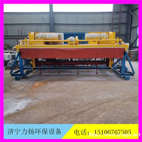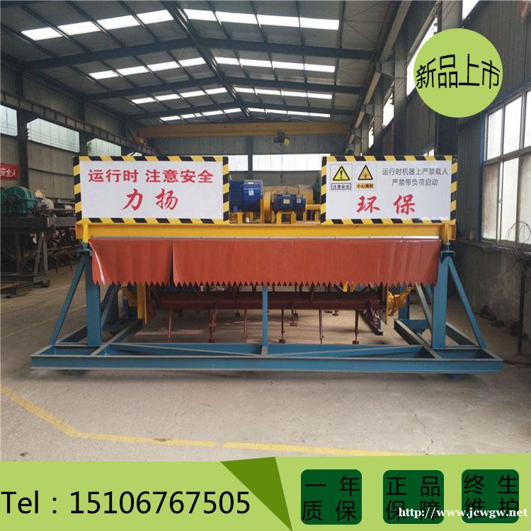 启动翻抛机:点开控制箱启动按钮,翻抛机会沿槽上的导轨自动行走,到达另一头自动停止,操作简单,可手动及遥控控制。
